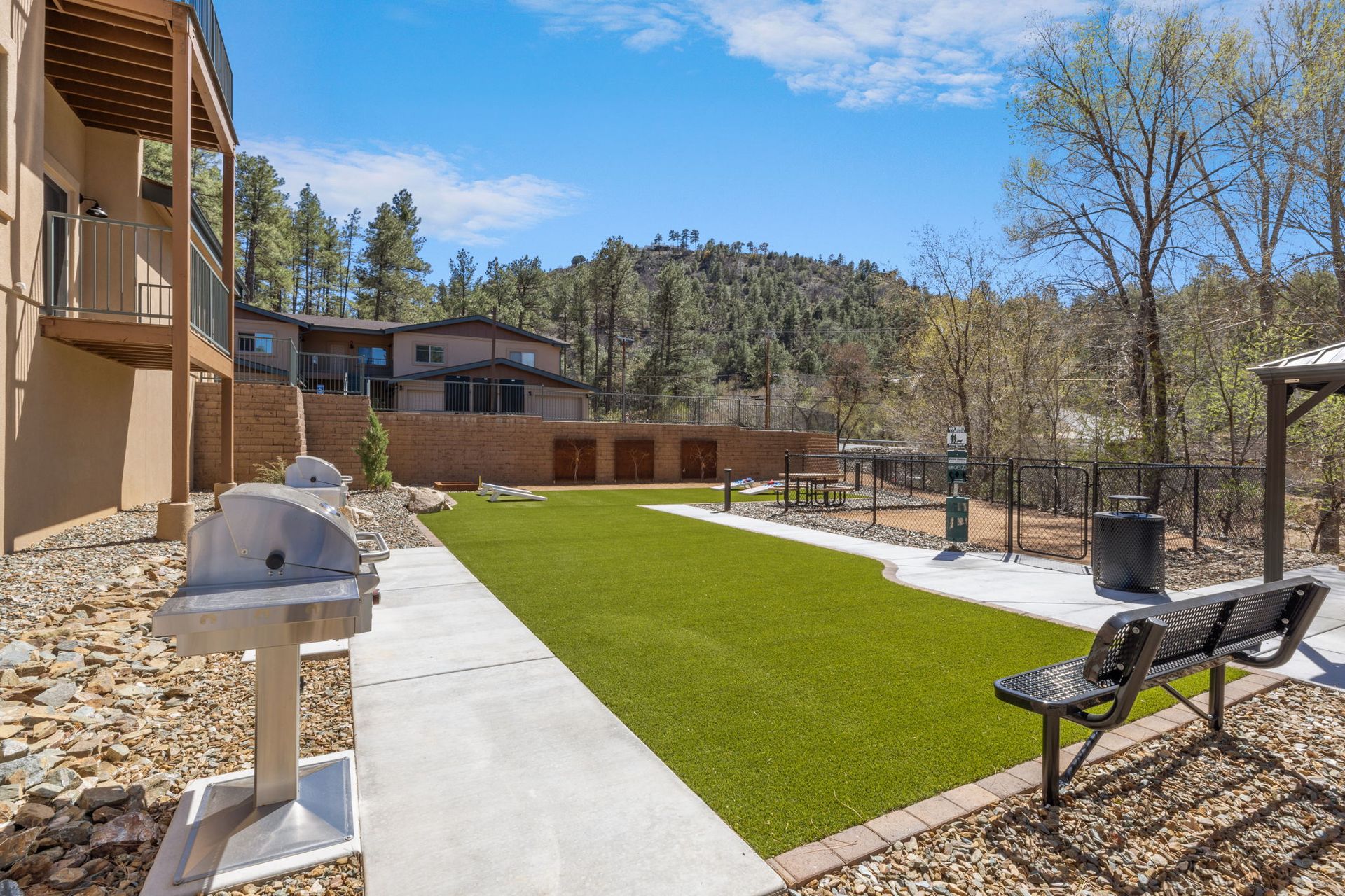 We love pets here! Your furry friends will thrive with access to our community park, which features a dog run for socializing, built-in gas BBQ grills, a gazebo with lighting, and a screened enclosure to keep your picnics bug-free.
