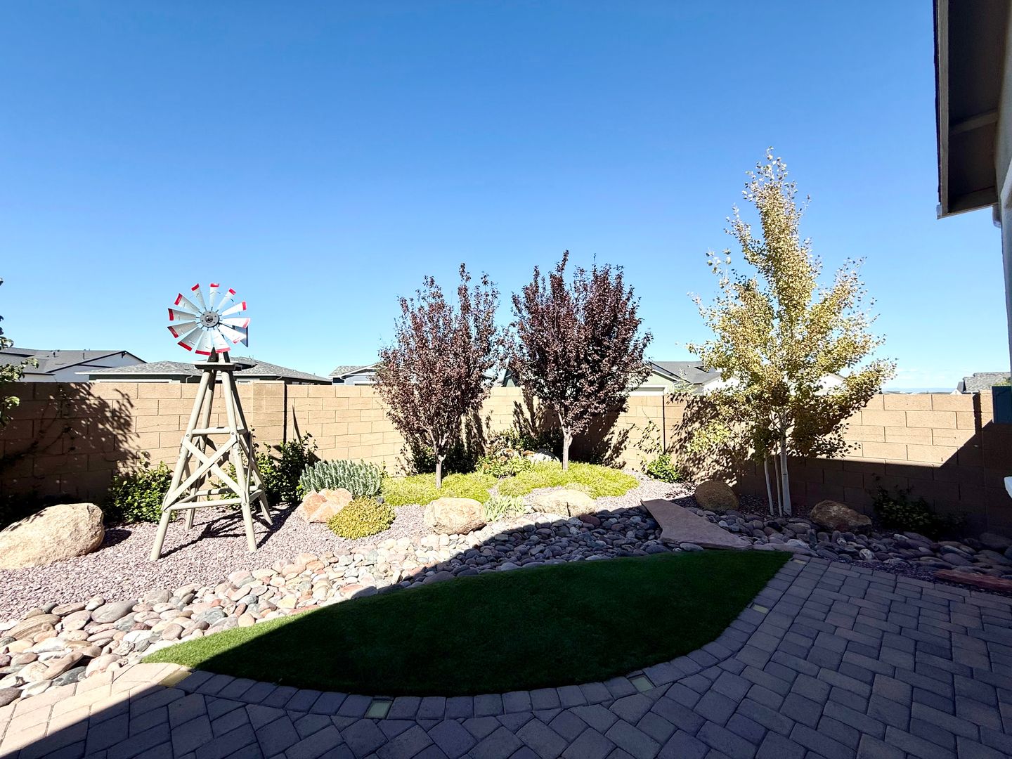 Step into modern luxury with this stunning 3-bedroom, 2-bathroom home built in 2021, perfectly situated in the highly sought-after Deep Well Ranch community. From the moment you walk in, you’ll feel the warmth and attention to detail that make this home truly special. The open-concept kitchen is a chef’s dream — featuring sleek quartz countertops, stainless steel appliances, and a spacious island that opens to the dining and living areas, ideal for entertaining and everyday living. Enjoy gatherings in the formal dining room or unwind in the inviting living space filled with natural light. Step outside to your own private retreat — a beautifully landscaped backyard complete with a covered patio, perfect for relaxing or hosting friends and family. Additional highlights include a 3-car tandem garage, modern finishes throughout, and thoughtful design touches that make this home stand out.